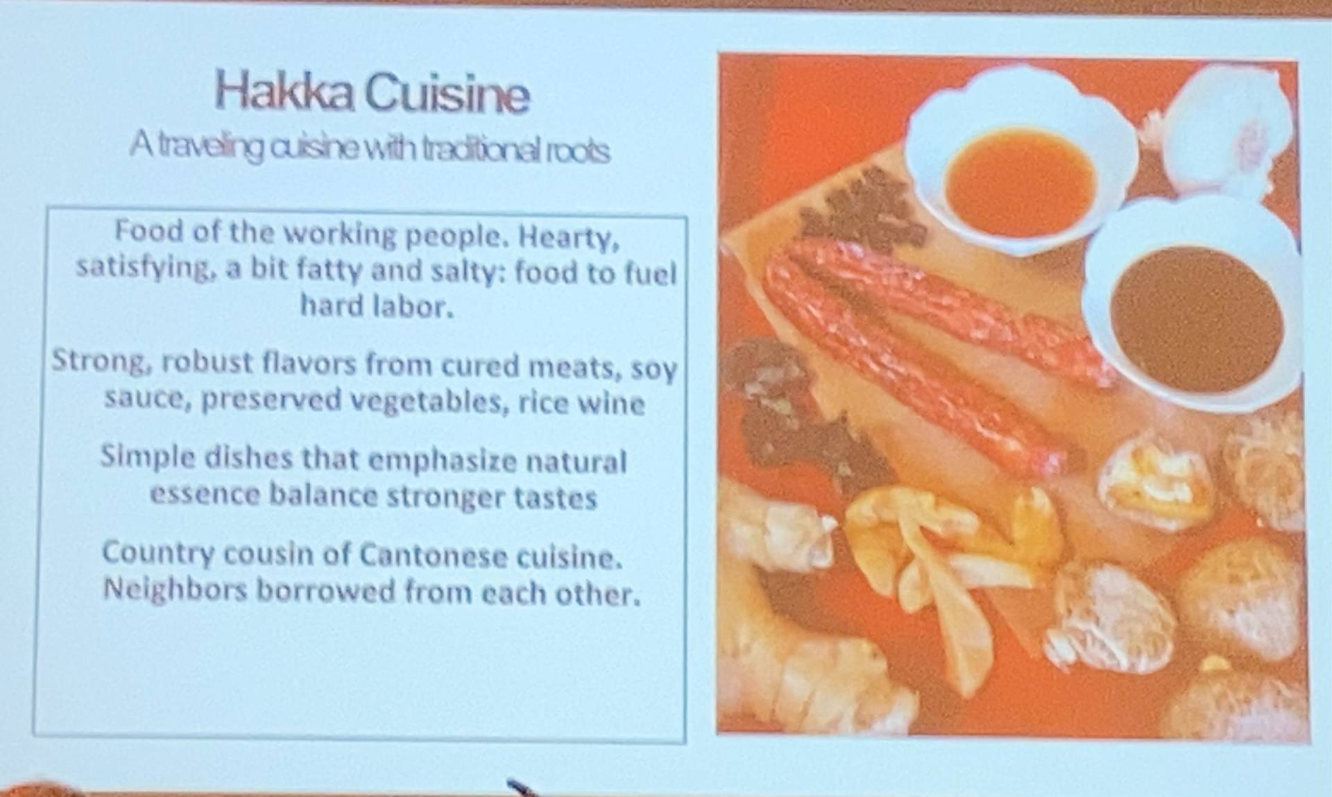 Anusasananan shared a presentation on her ethnic identity as a Hakka Chinese person and how her book documenting Hakka food became a way to explore her own culture, which she didn’t know much about until she wrote the cookbook. The Hakka 客家 (“guest families”) are a displaced people who migrated from northern to southern China and then into a global diaspora scattered across Southeast Asia, Mauritius, India, North America, and beyond, often driven by war, famine, and violence from other ethnic groups.