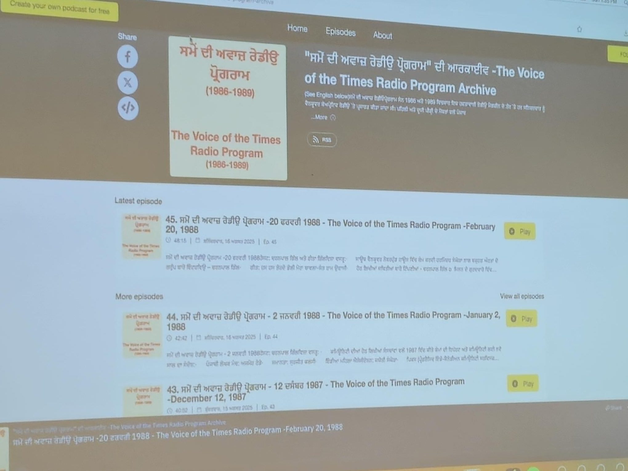At a time when there is a generational change in South Asian radio broadcasting in Vancouver, as evidenced by the recent retirement of Sushma Datt from RJ1200/Spice Radio, the launch of the Voice of Times archive provides a broader historical perspective